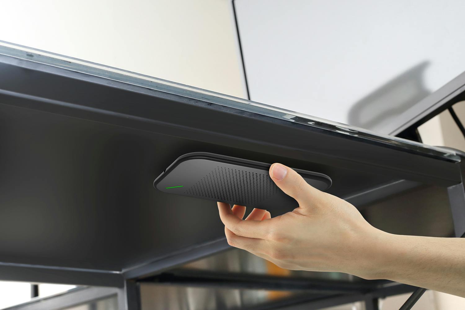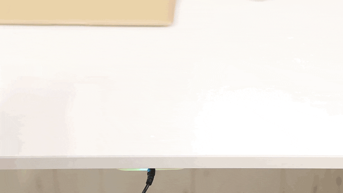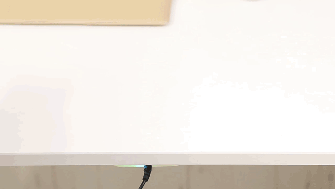 いつも使用している机の裏に『deskHack』を設置すると、机がスマホがワイヤレス充電器に早変わり