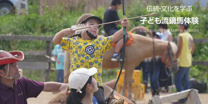 毎年サマーキャンプでは、十和田市の馬の歴史や乗馬、流鏑馬を子どもたちへ指導いただいています。