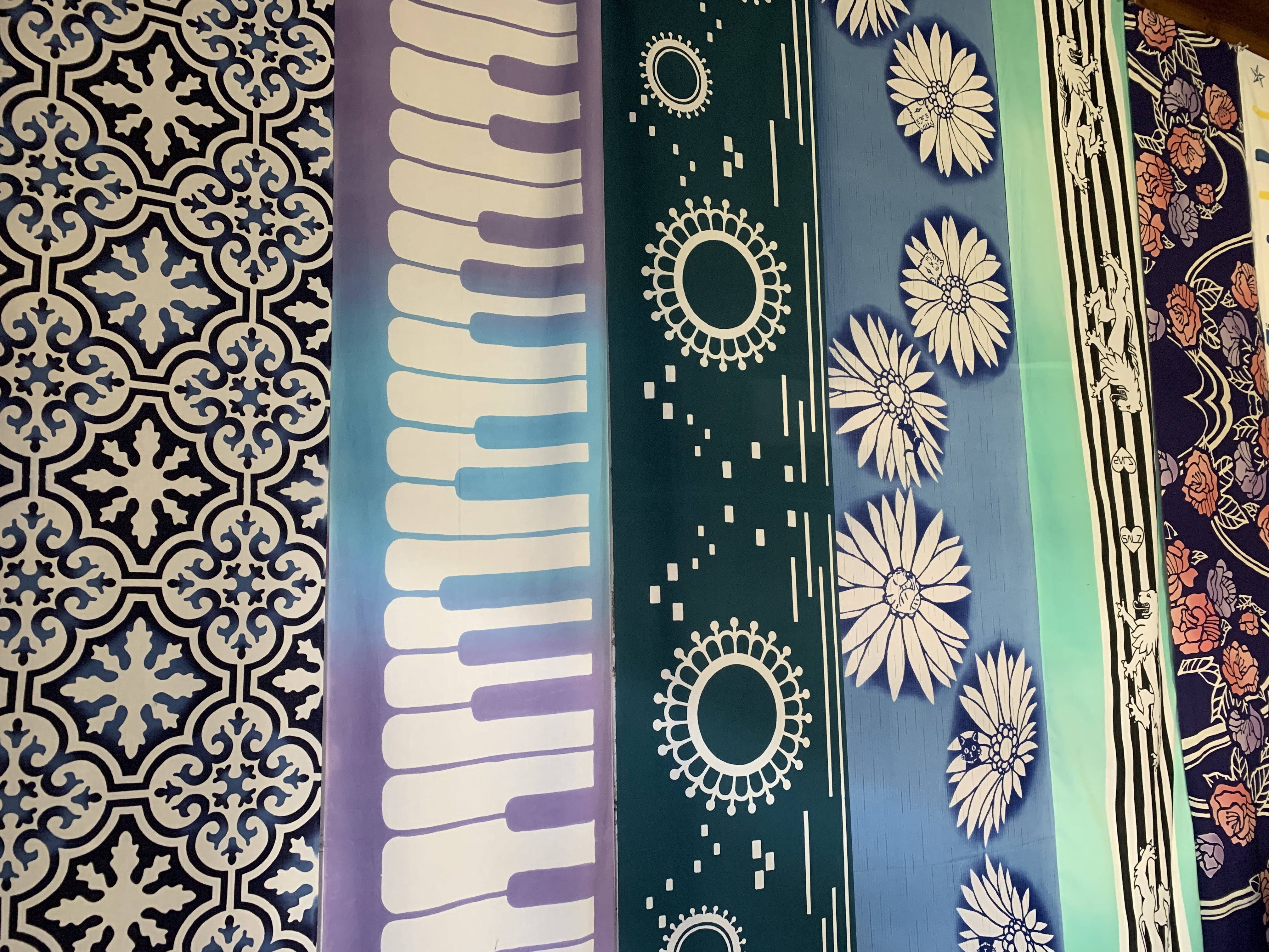 伊勢型紙で染めた浴衣生地着物(江戸小紋、加賀友禅、京友禅、紅型)、浴衣、手ぬぐい、藍染などはもちろん、アロハシャツを染めていた時期もありました。