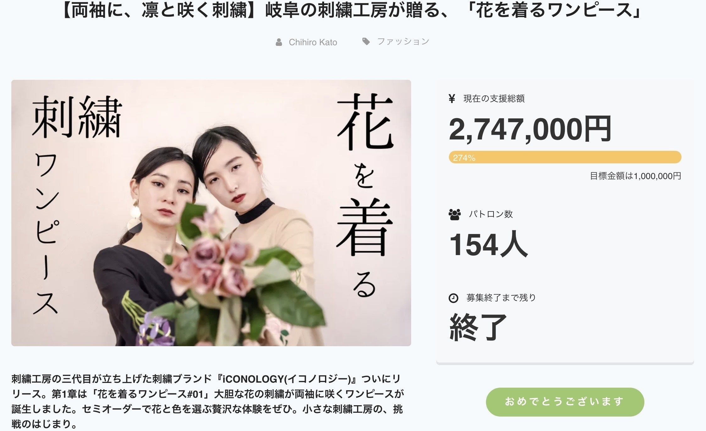 【両袖に、凛と咲く刺繍】岐阜の刺繍工房が贈る、「花を着るワンピース」