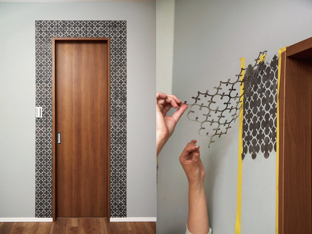 例えば伊勢型紙のリピートという考えをいかした、DIYの壁紙用ステンシル。