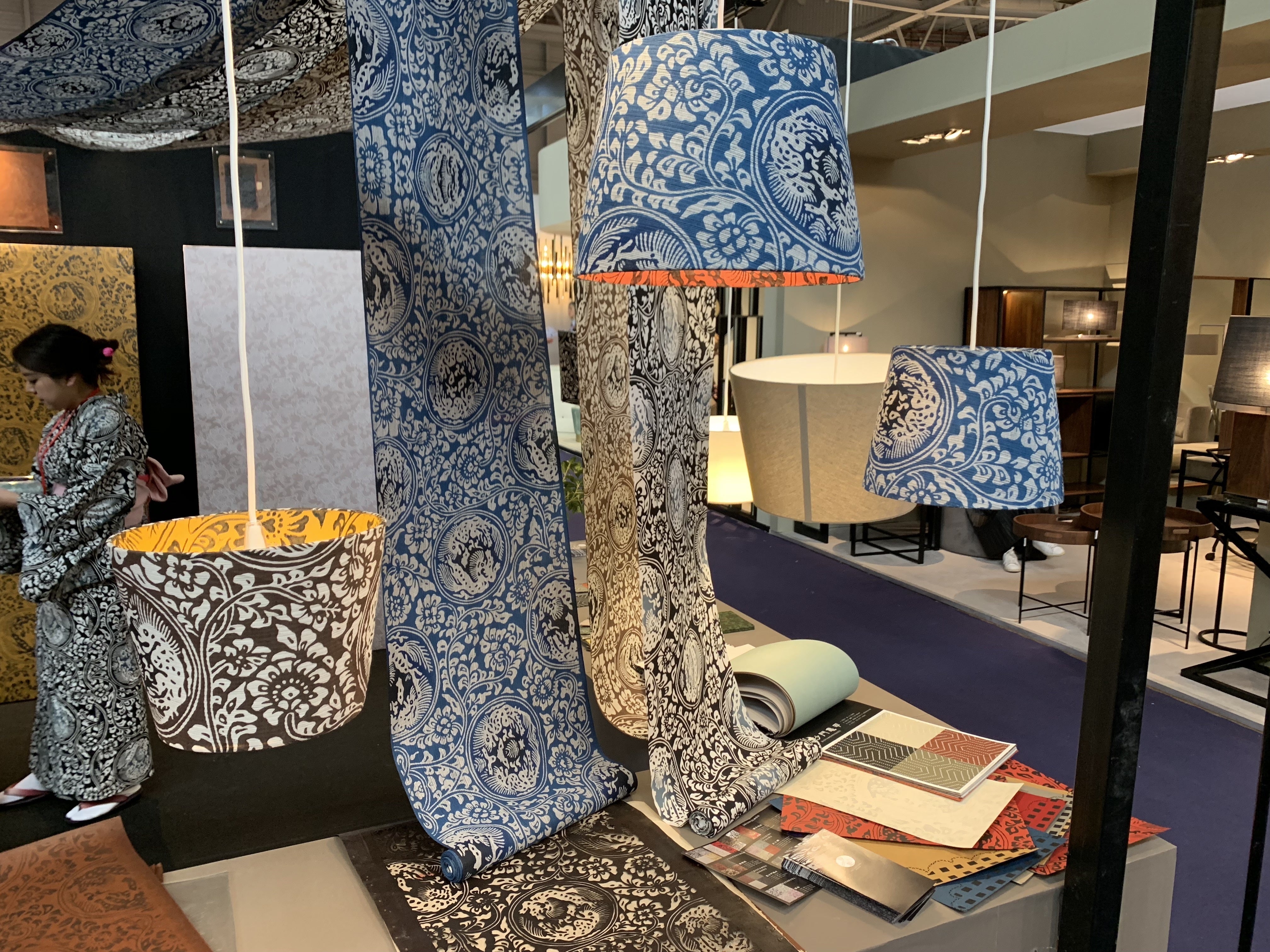 伊勢型紙で染めた生地を使った、ランプシェードやクッションも生まれました。