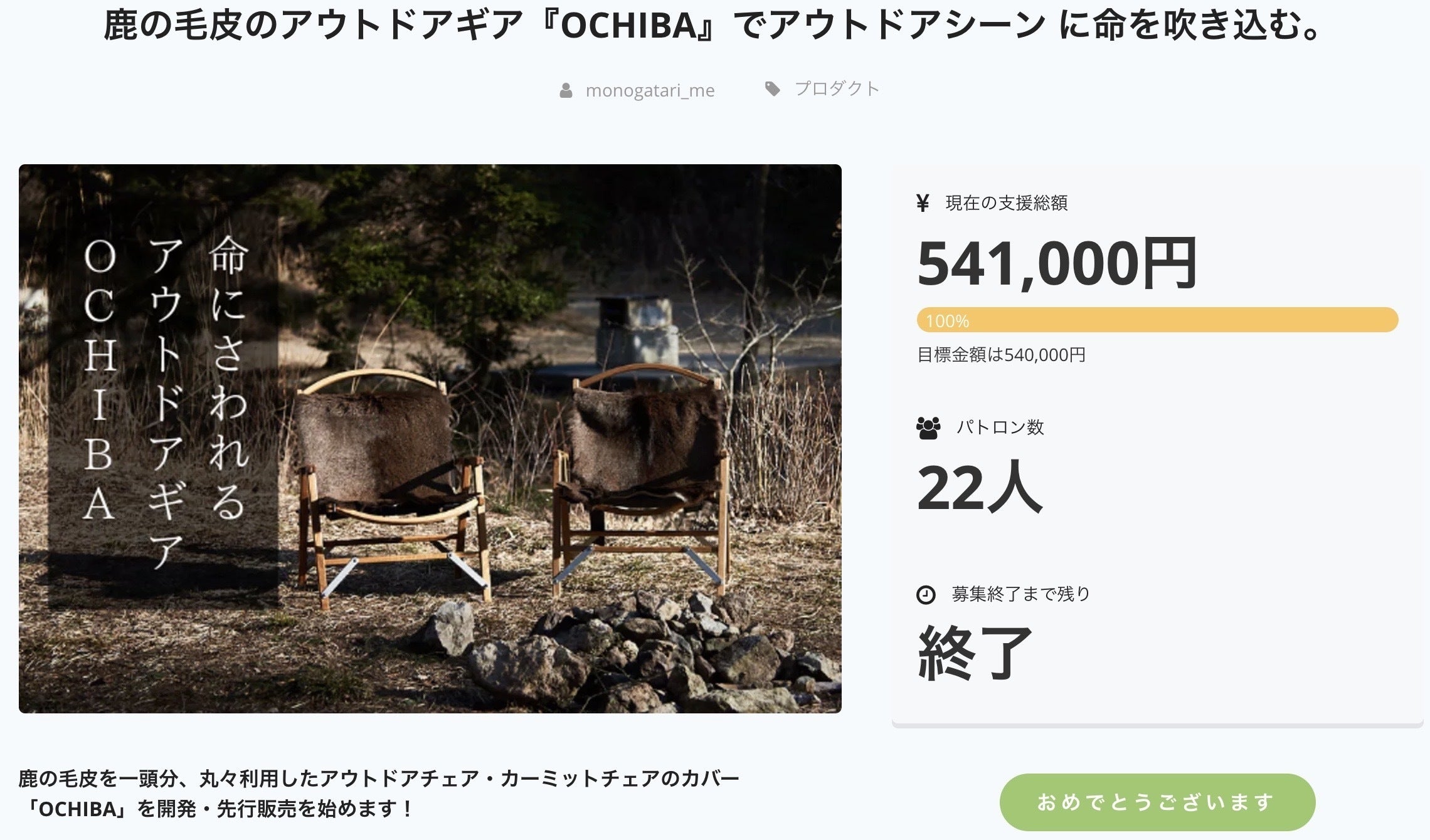 鹿の毛皮のアウトドアギア『OCHIBA』でアウトドアシーン に命を吹き込む。