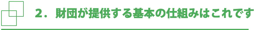 ニュータウンに特化した財団法人の提供する仕組みはとてもシンプルです。