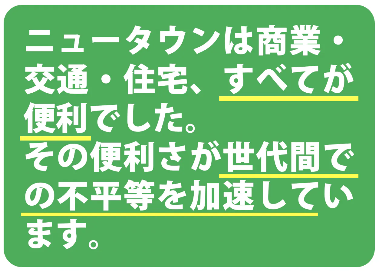 私がこれまでの活動のなかで気づいた、特にニュータウンには大きな問題があります。