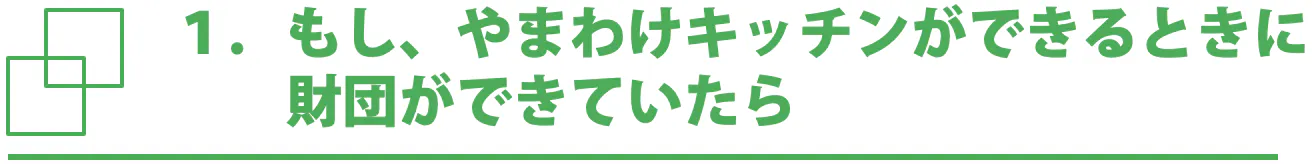 もし、先程紹介したやまわけキッチンを立ち上げるときに、財団が立ち上がっていれば、困りごとに応じて、資源をつなげる事ができたのでは無いでしょうか。