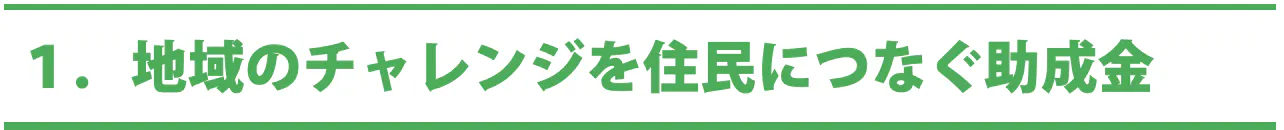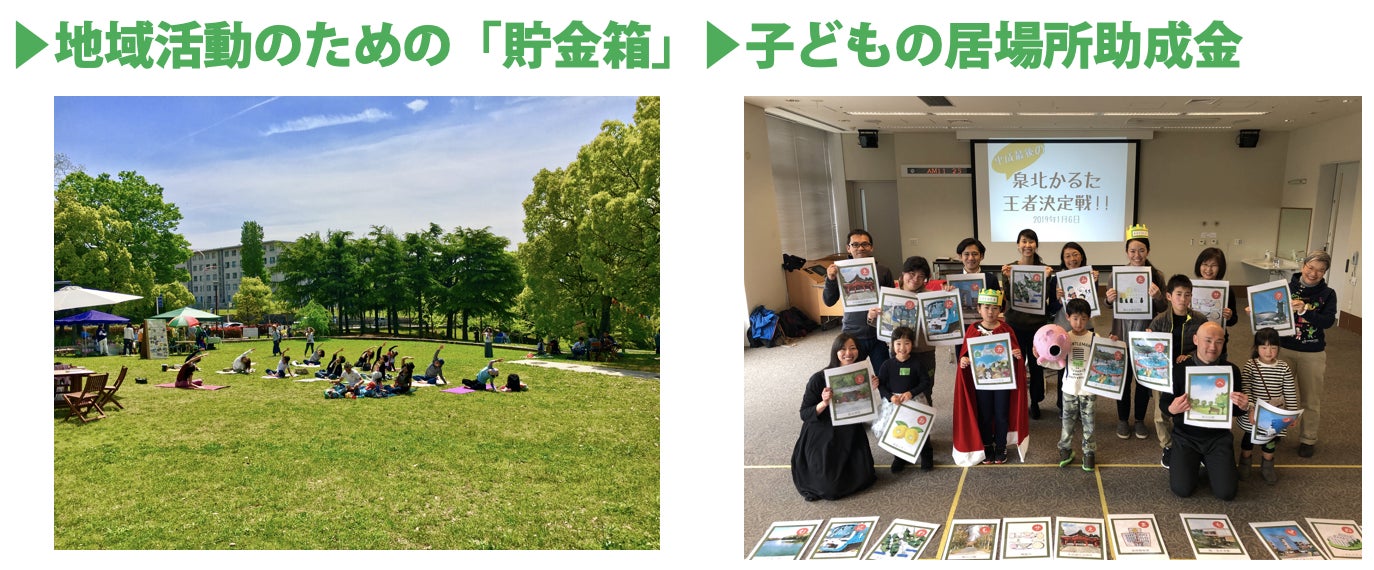 地域のチャレンジを住民につなぐ助成金では、子どものサードプレイス助成金を財団設立後、最初の取り組みとして各地区に多世代の交流の居場所を応援する助成金制度を設定します。また、地域のチャレンジをする人と地域住民をつなげる「貯金箱」として活用できる助成金を提供します。つまり、プロジェクトのアイディアを公開し、賛同者を募ることで資金集めを支援する仕組みをです。