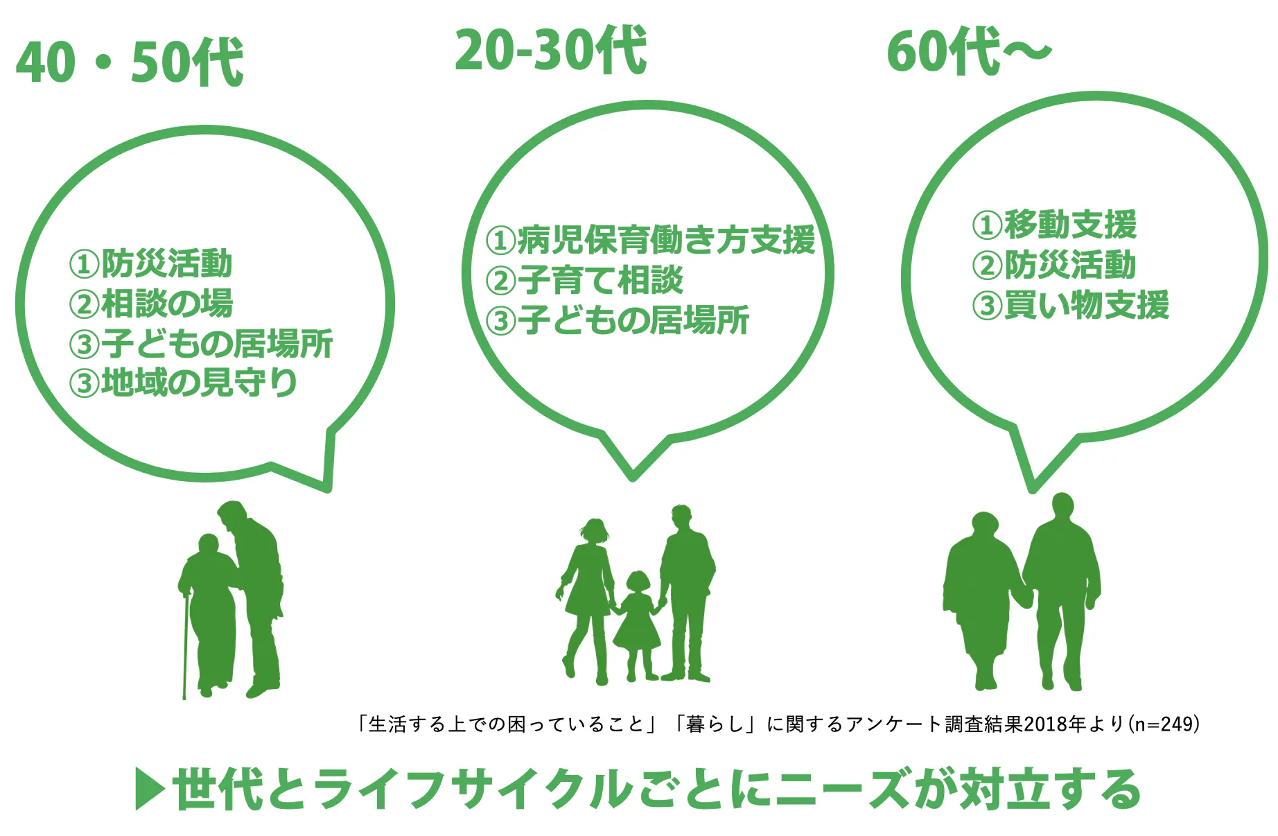 場ができると、いろんな声が集まります。世代とライフサイクルごとにニーズが対立します。