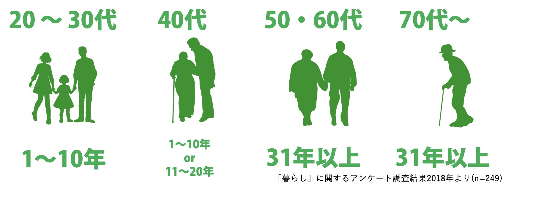 暮らし方にも変化が起きています。団地は世代ごとに居住年数の差が出ています。