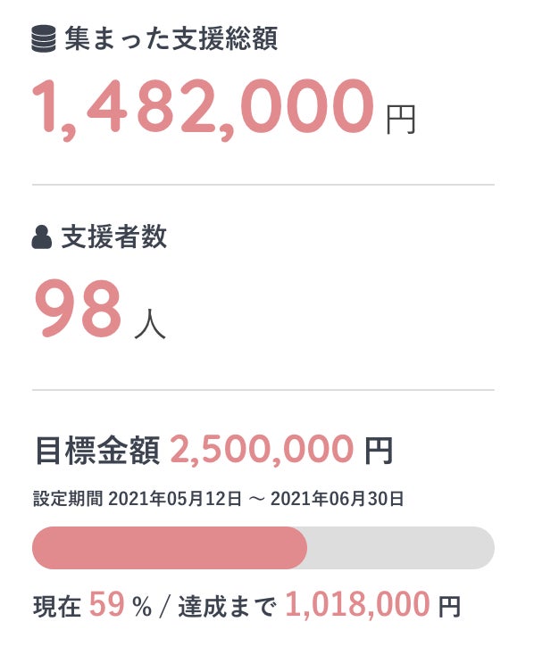 60%をもくぜんに迎えることができました!ご支援や拡散ありがとうございます!