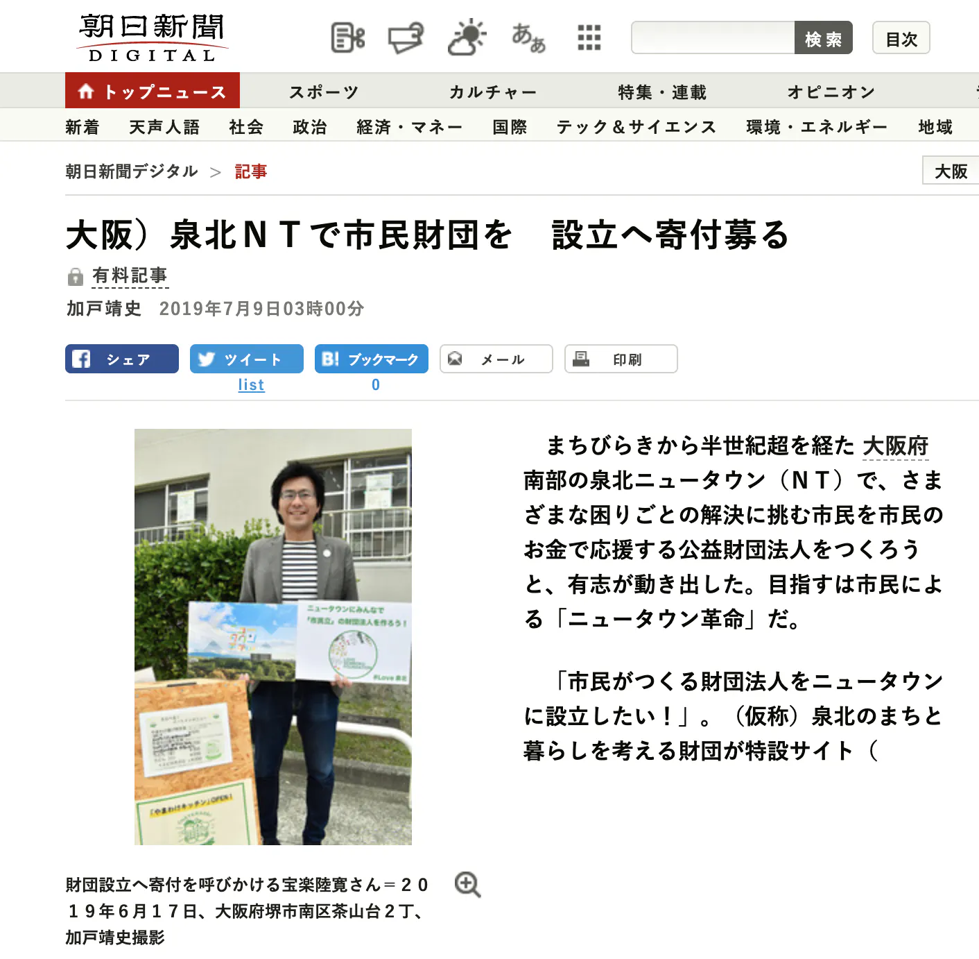 *まちびらきから半世紀超を経た大阪府南部の泉北ニュータウン(NT)で、さまざまな困りごとの解決に挑む市民を市民のお金で応援する公益財団法人をつくろうと、有志が動き出した。目指すは市民による「ニュータウン革命」だ。