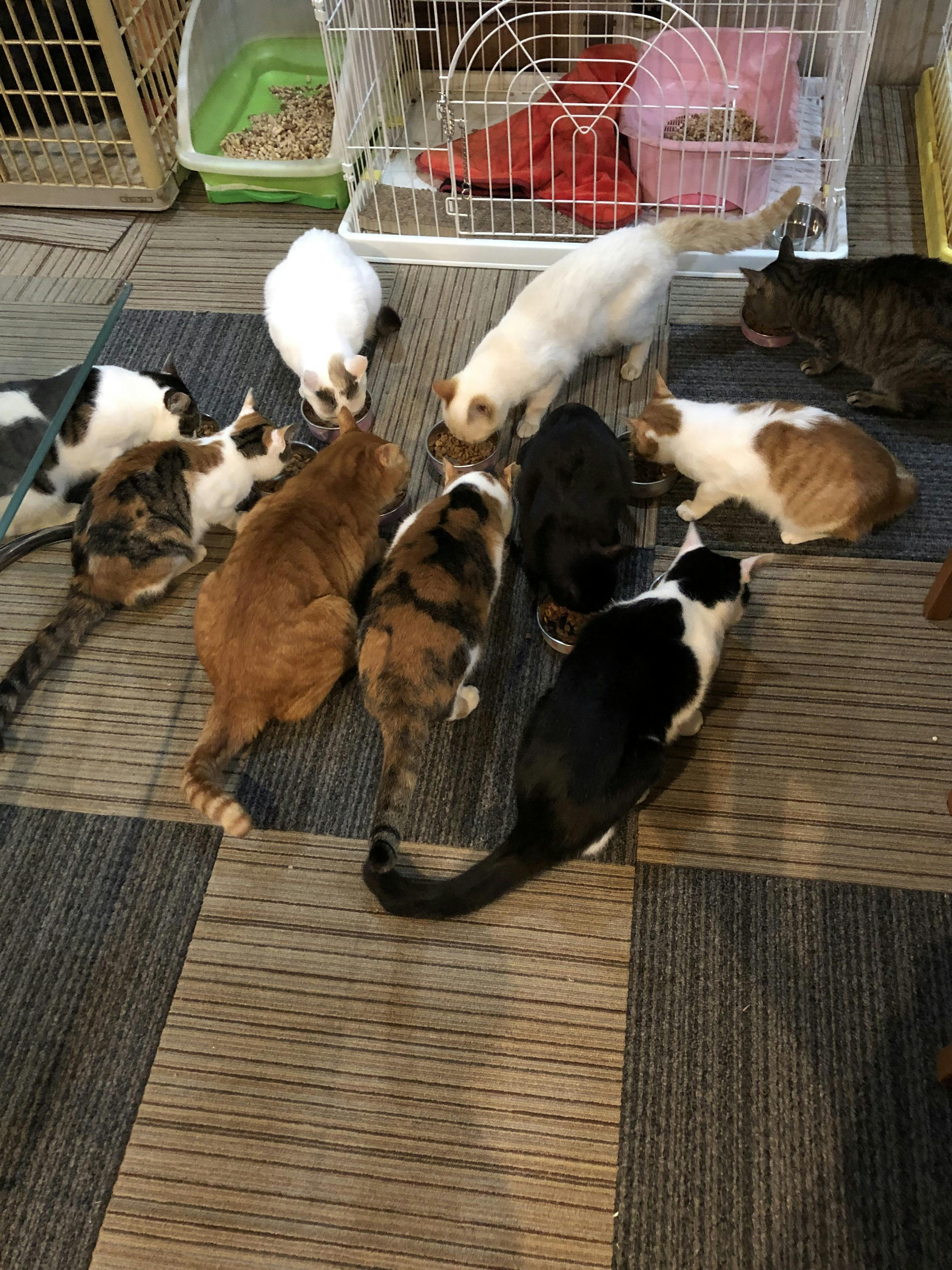 2019/05/23 19:43現在21命の保護猫ちゃんが居ます。年齢1歳から14歳を迎えた子と年齢幅がありますが、年齢に合わせて食事を与えて、健康管理に気をつけています。シェアハウスに来た子達は、元飼主様が飼えなくなったから…と持ち込みの子、他府県の保健所まで迎えに行った子、お店の前に捨てられてた子、理由は色々ですが、みんな、人間の都合で、ここに来た子ばかりです。現在4年目を迎えても、まだ、毎日関わってる私自身や家族にも長い時間触れ合うのを慣れない子も居ます…。でも、御飯は近くで食べてくれるようになりました。心に傷をおった子達は心を開いてくれるのに時間がかかります。だけど、日々、保護猫ちゃんは、ほんの少しづつですが、時間と、その子その子に合った寄り添い方で接してあげると、変わっていきます。何とか、人に慣れた子達には、ずっと安心して居られる、お家探しをして新しい家族にトライアルに送りだします。ただ、やはりトライアルしても、戻ってくる子も居ます。なので、終生、私の元に居る子も居てます。日々、その子その子に合った接し方を考え、食事を考え、環境を考えて、活動をしております。 もっと見る