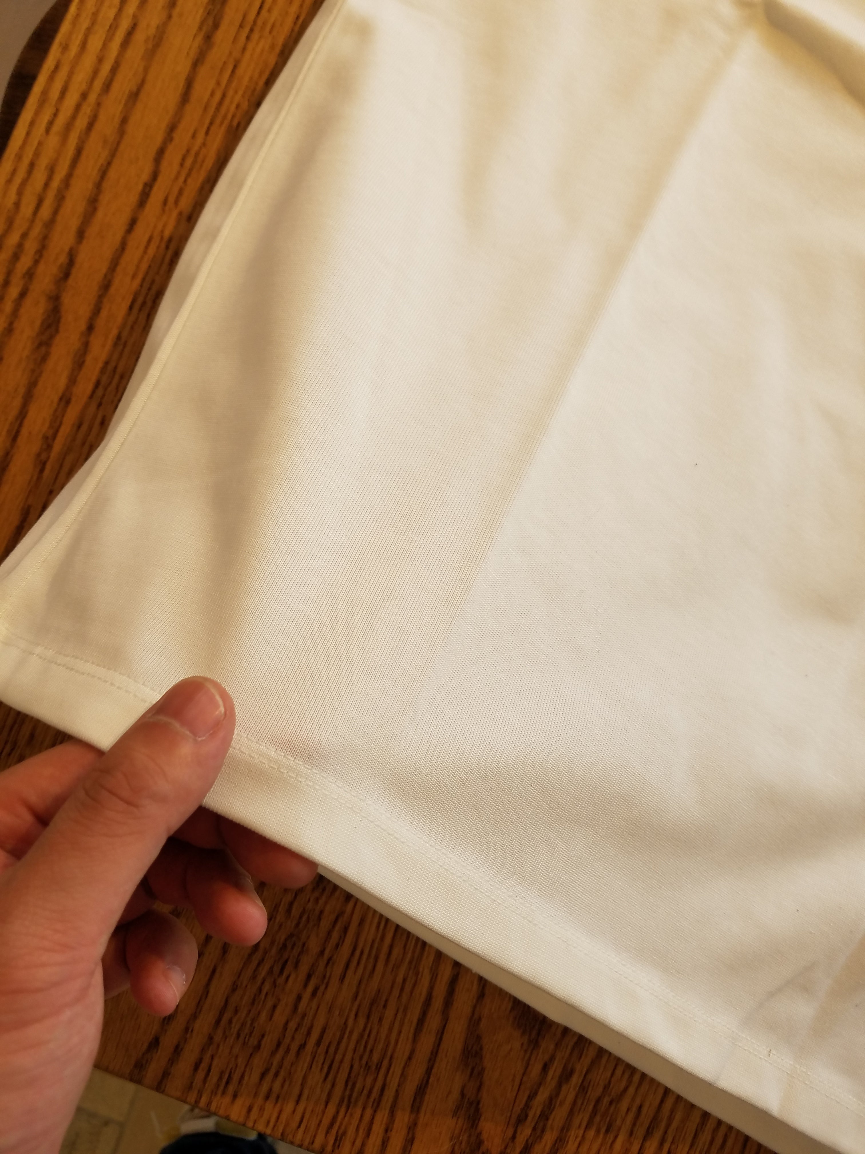 素材はプレミアムなギザコットンを使用している。希少価値の高いコットンなので高価にはなるが、着心地はサラサラしていて夏場の汗も気にならない。洗濯を繰り返しても首のヨレ、生地のヨレも少ない。
