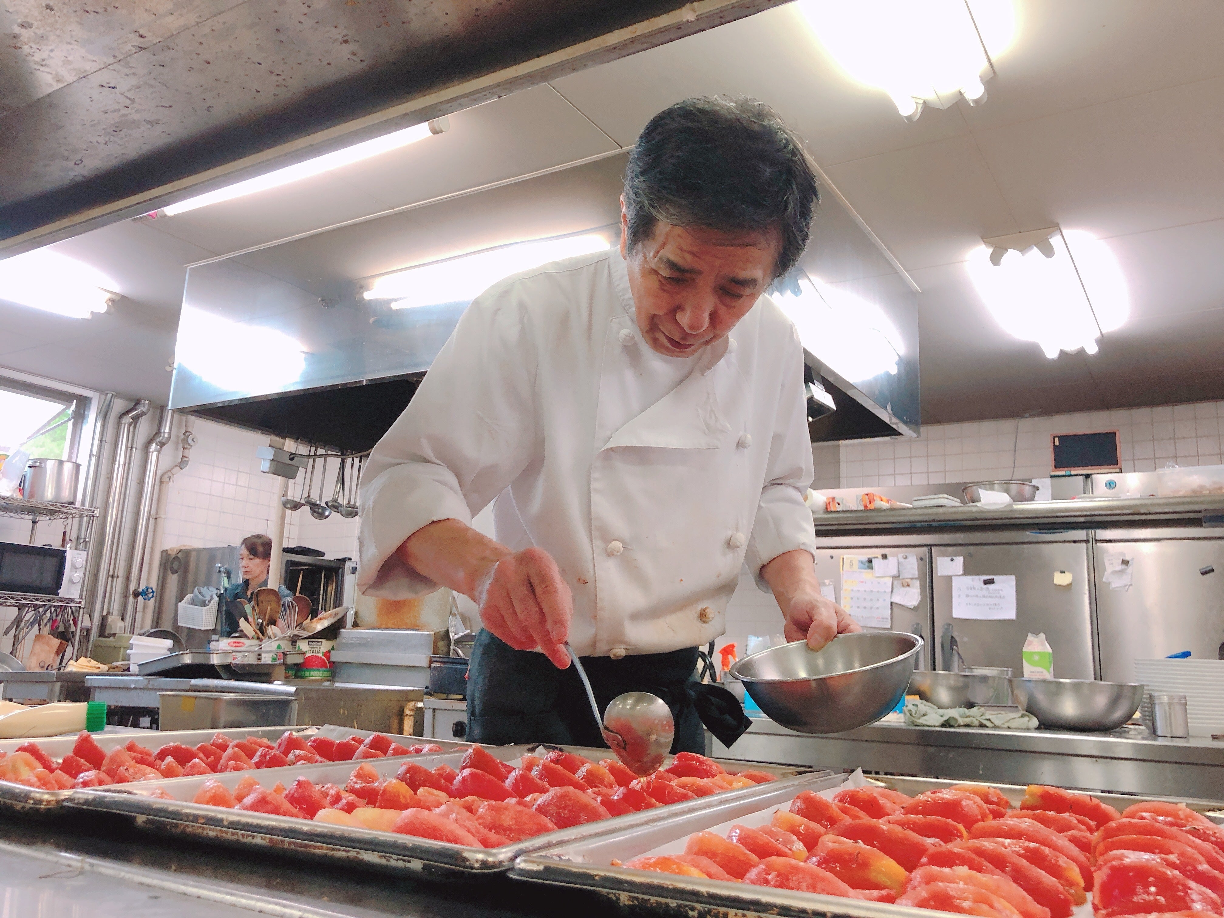 本日6月4日は、内田シェフとともにお礼の品、セミドライトマトを準備しています!