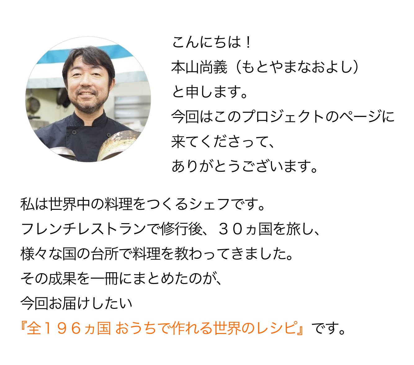 2017年に425人の支援により370万円以上の資金を集め、念願のレシピ本『全196ヵ国 おうちで作れる世界のレシピ』を出版。
