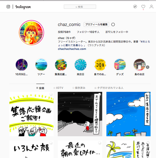 インスタグラムで更新している移住体験漫画がフォロワー10万人を超え、昨年「夫とちょっと離れて島暮らし」(ワニブックス)を出版。