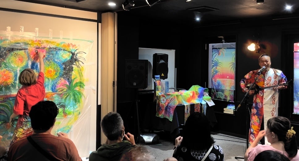 ゲストに、沖縄出身のシンガーソングライター与那覇政克さんにお越しいただき、音楽と絵のコラボレーション!