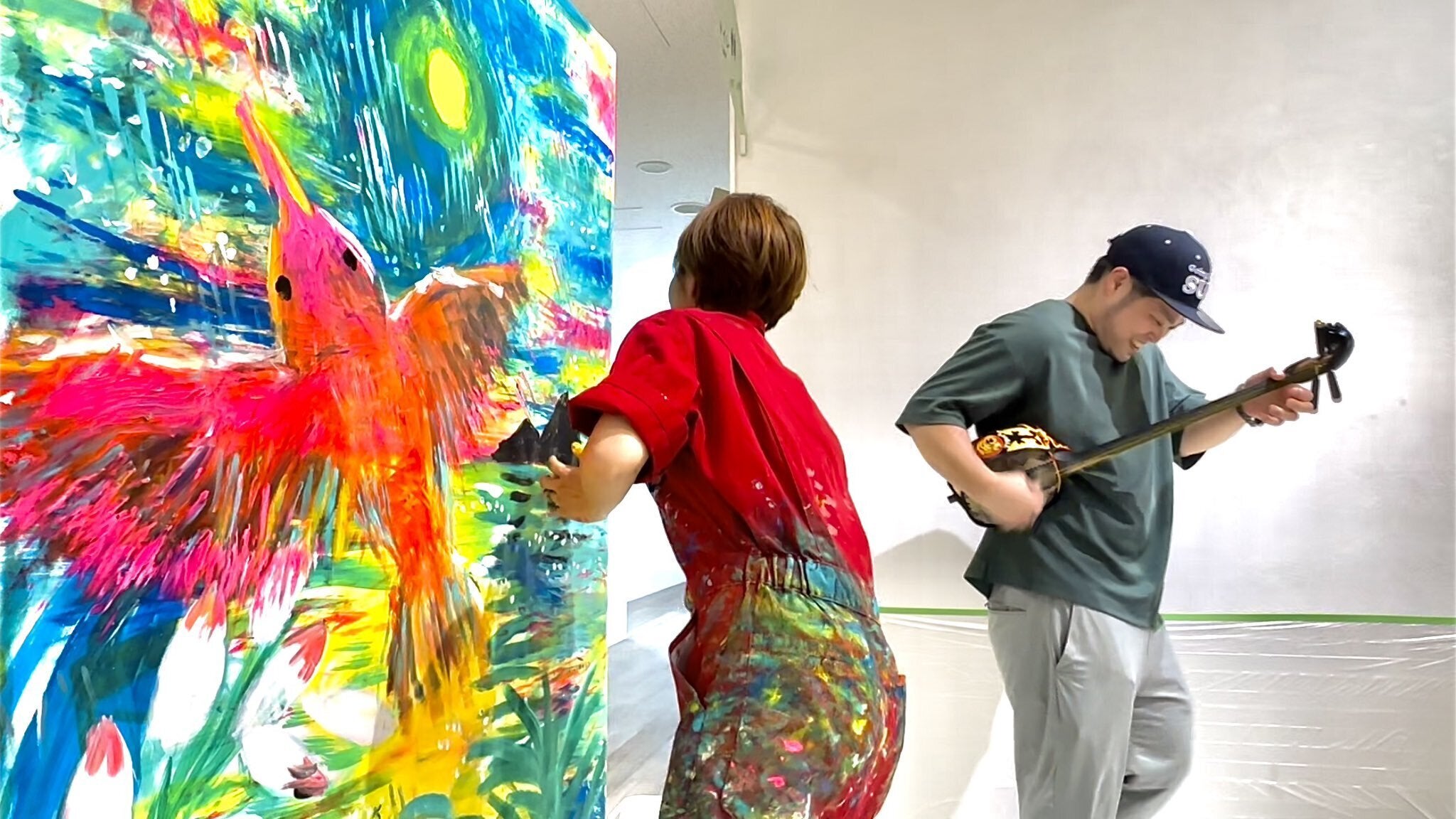 ライブペイントは唄者の里朋樹さんと一緒に♩