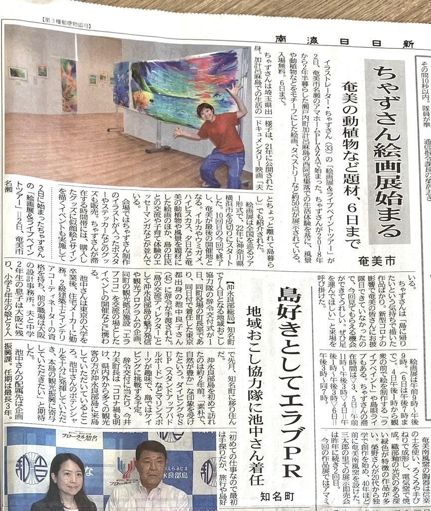 先日、5月2日〜6日、無事ラストの奄美大島にて、展示会とライブペイントを無事開催することができました!