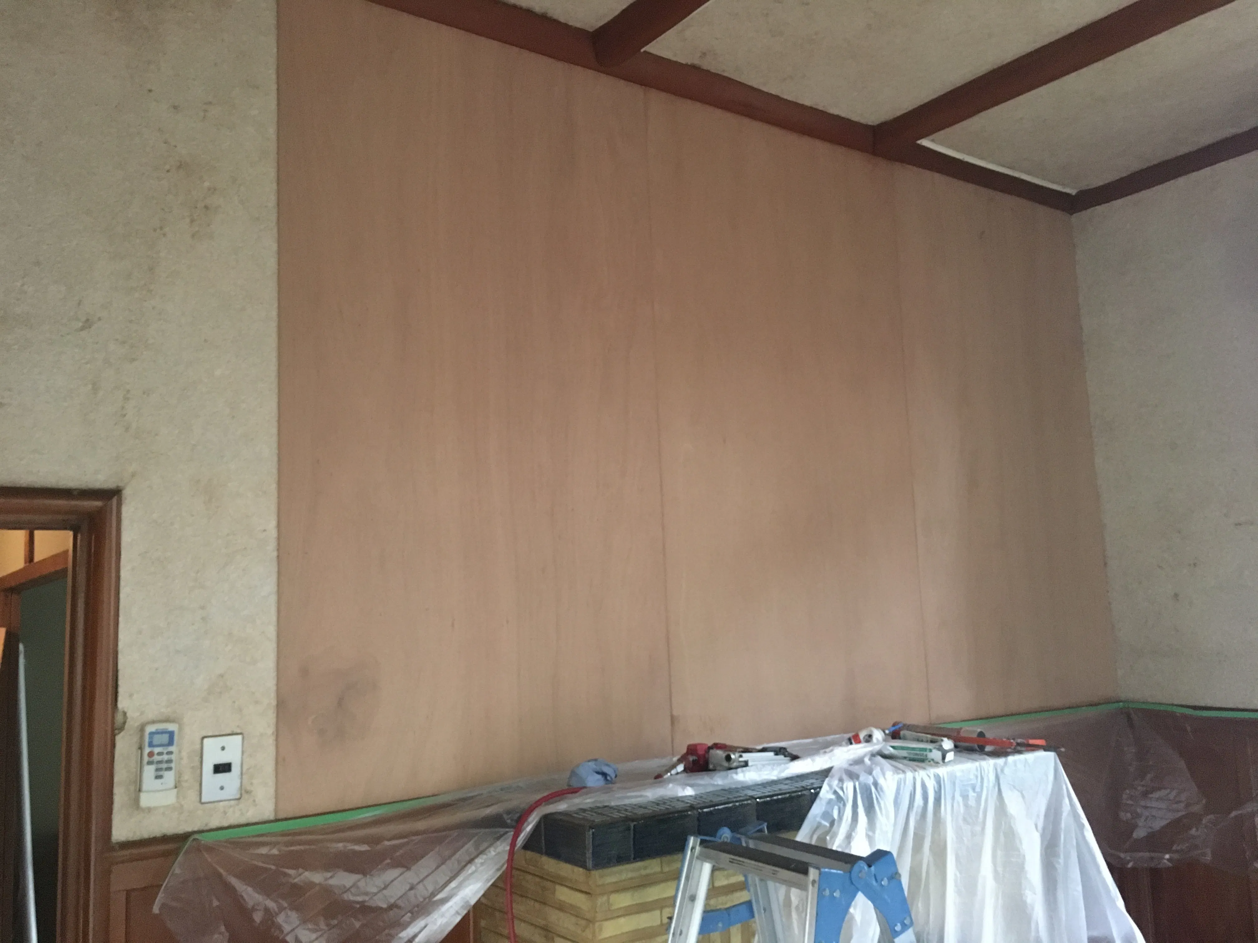 1階の洋室の壁の修復工事が始まりました。予算の関係上一部しか変えれませんでしたが今後計画的に修繕していきたい箇所です。