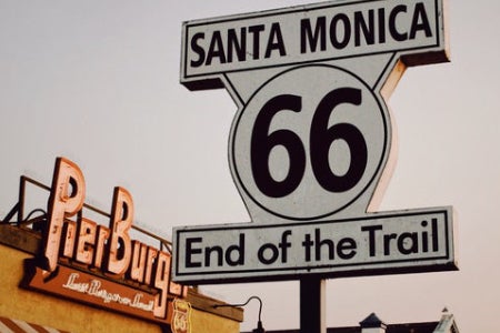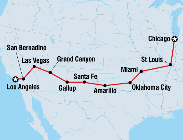 シカゴからロサンゼルスまで続くルート66は全長約3940km。それを約40日で走破する予定です。