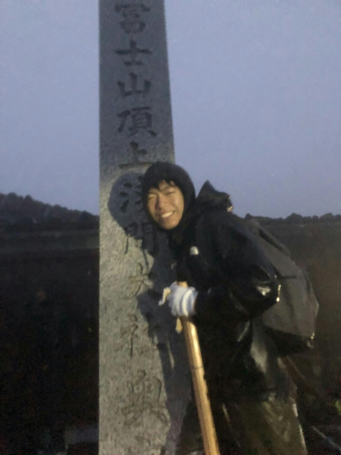 この日の富士山は大雨で上級者でも厳しいと山小屋の人に言われる中、登山を続け頂上までついたのですが、風と雨が強く目を開けて立っているのも大変でした!笑