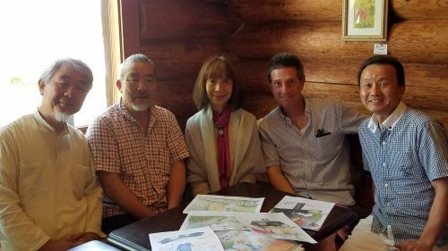 山梨県北杜市の著者でエッセイストのさわもりりささん(中央)と、