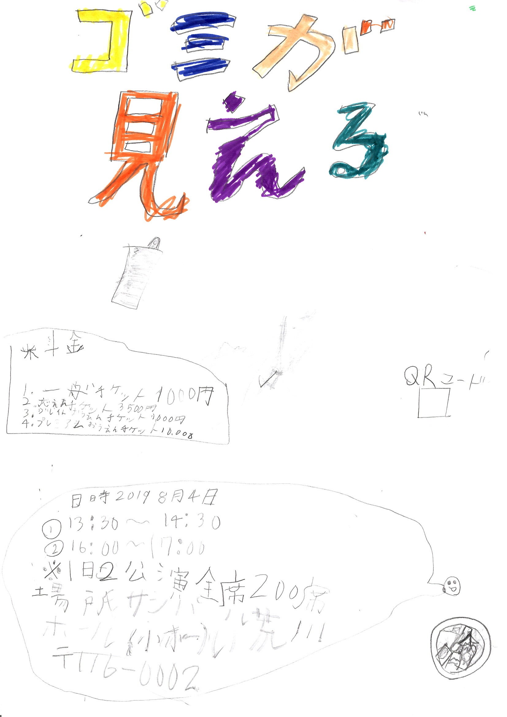 (5) 他に、子供たちがやったことは、チケットを手作りしたり、小道具を作ったり、チラシのアイデアを出したり、支援者へのリターンを考えたり、プロの俳優さんに出演交渉をしたり、宣伝動画をYouTube にアップしたり、Twitter(@gomimie_kids)を立ち上げたり、自発的に、楽しみながら行っています。
