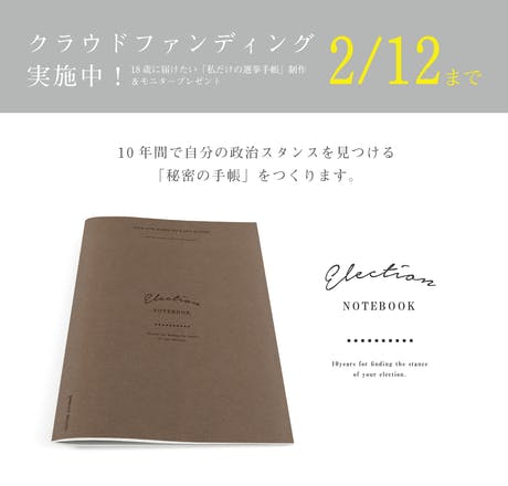 「私だけの選挙手帳」の表紙イメージができました。シンプルかつシックなデザインの手帳で自分の投票行動を記録することができます。