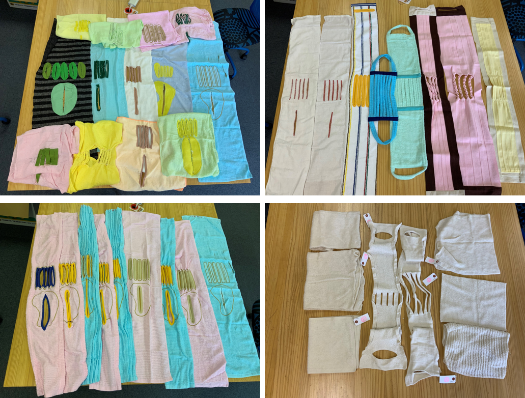 当初は市販のタオルに切れ込みを入れて試作を繰り返しました。