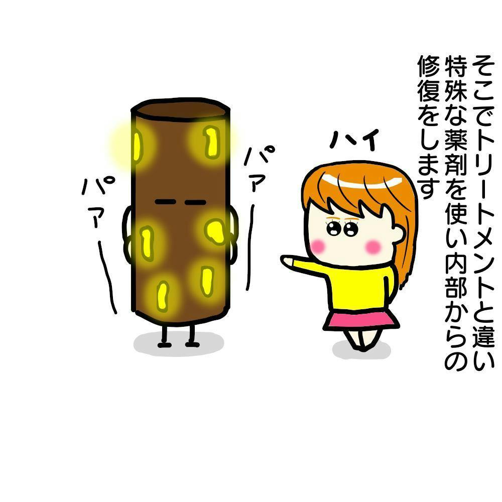 一般的なトリートメントによる補修と根本的に違うのは、破損部分をコーティングで覆い隠すのではなく
