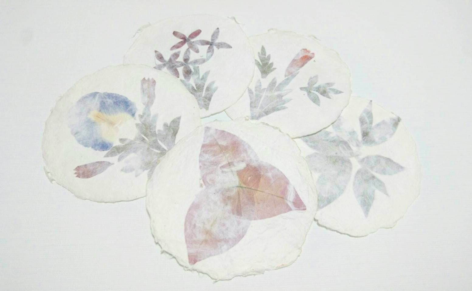 (ラオス紙すきの村で依頼制作 草花のノート、封筒、コースター)