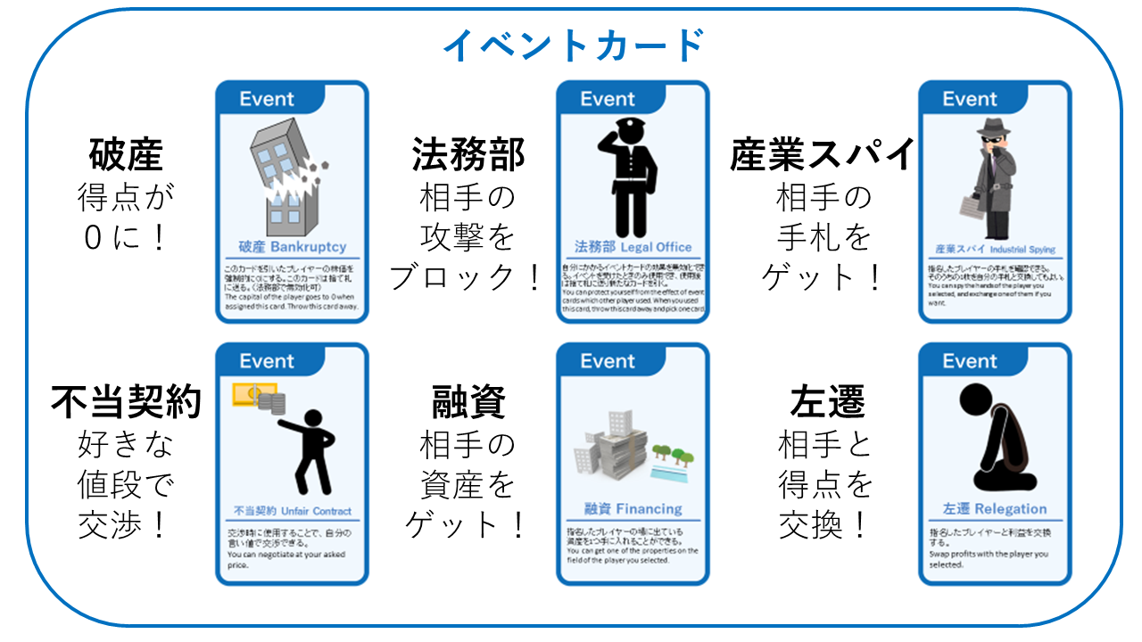 イベントには「強制的に得点が0になる」という恐ろしいものから「自分の言った値で交渉ができる」、「相手と得点を入れ替えられる」といった強力なものまであります。