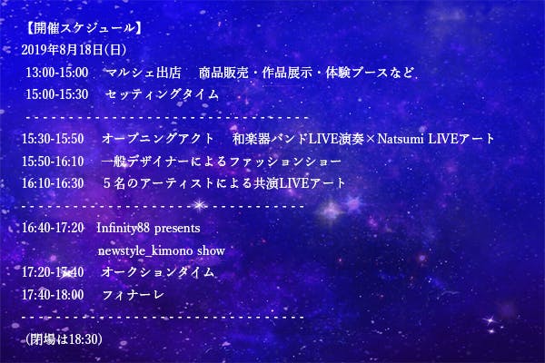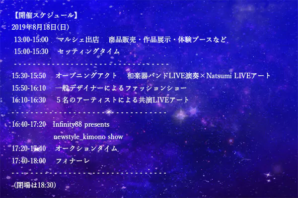 令和元年8月18日。東京の南青山にて、わたしたちInfinity88初主催となる『kimono × Art』を融合させた、1日限りのショーイベント「Infinity gate」を開催いたします!!
