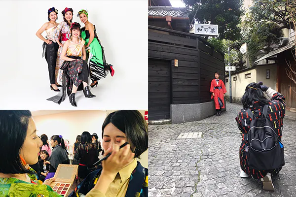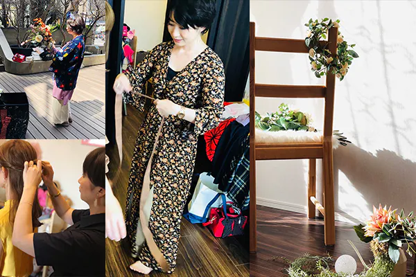 着物をリメイクした衣装や小物のデザイン、オリジナルアクセサリーやブーケの製作、みんなの想いを叶える空間演出、メイクや写真撮影などを通して、ひとりひとりが心に描いた「こんなことやってみたい!」というワクワクをカタチにすることが、わたしたちのミッションです。