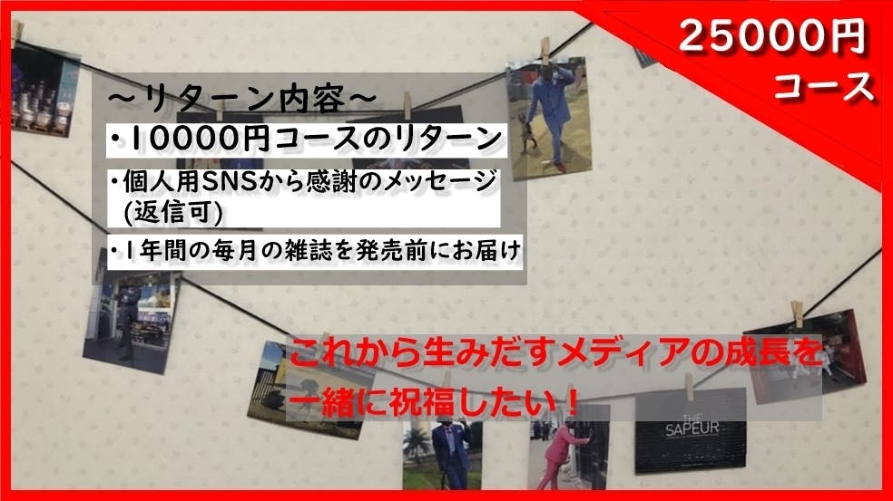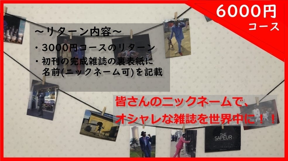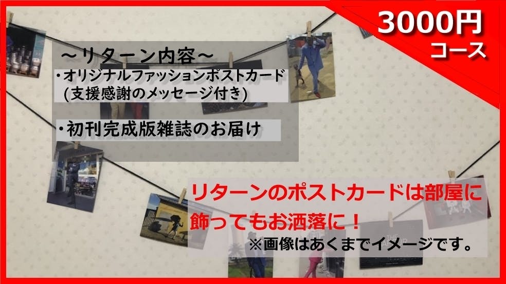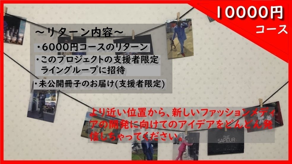 ・雑誌制作を応援していただいた方、この先雑誌に関わっていただける人で構成されたLineグループにご招待(SNSでのファッション好きの交流や雑誌への意見などを即時取り入れていこうと思います。)