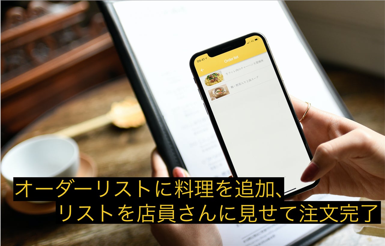 オーダーリストに気に入った料理を追加することもでき、注文時はそれを見せて注文。
