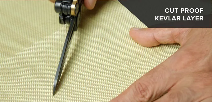 ナイフで切りつけられても切れにくいケブラ―素材を使用しています。