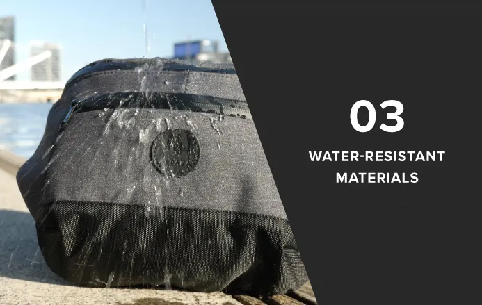 スリングバッグ「Bravo Sling」は雨に降られても安心な防水素材を採用しています。
