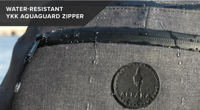 スリングバッグ「Bravo Sling」のファスナーは世界的に定評のあるYKKの防水ファスナーを採用。バッグの中に水が入りません。