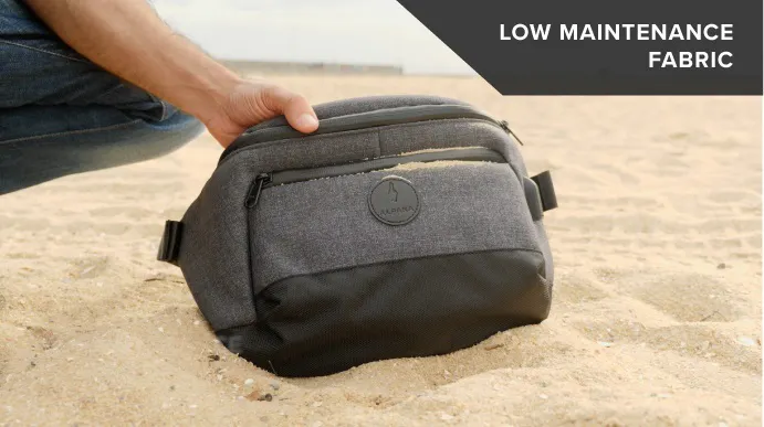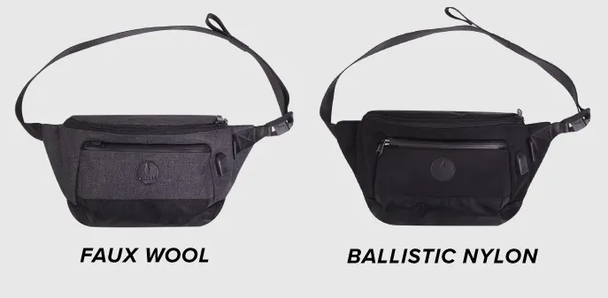 スリングバッグ「Bravo Sling」のファブリックは、バリスティックナイロンかフェイクウールとリップストップナイロンの二層構造でしっかり防水します。