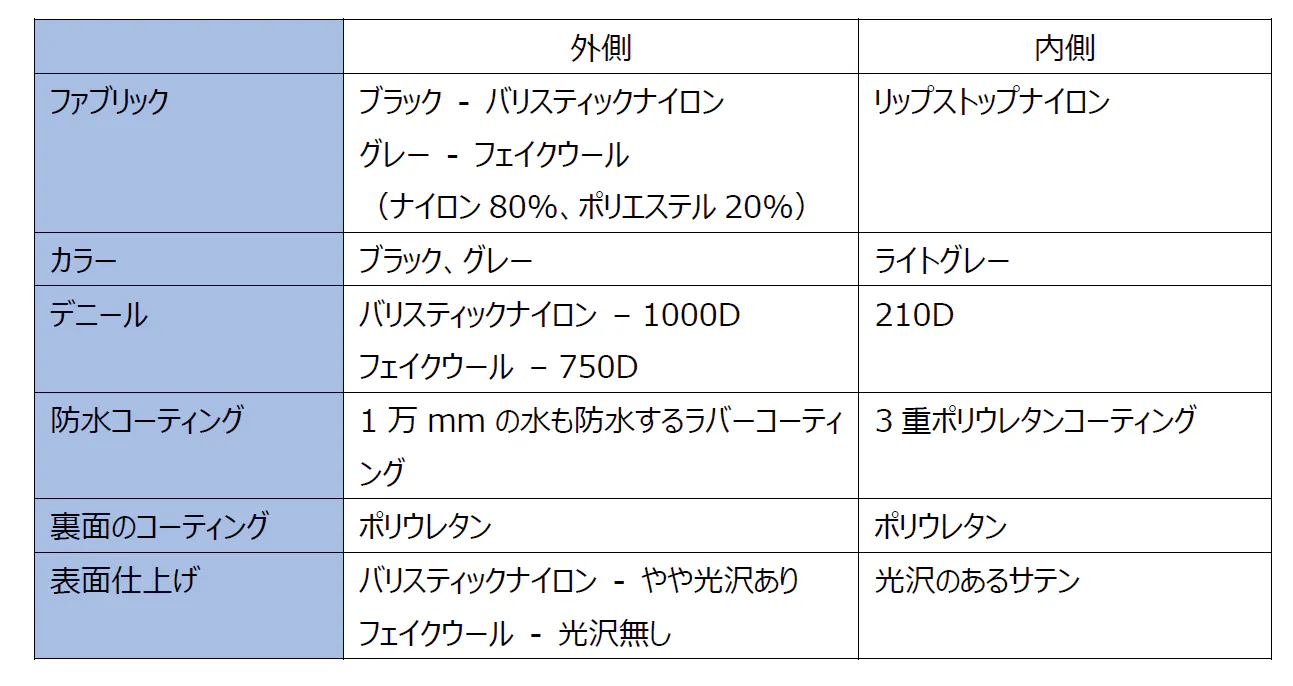 カラーはグレー(左・素材はフェイクウール)とブラック(右・素材はバリスティックナイロン)の2色から選択できます。