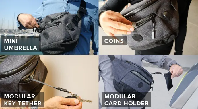 スリングバッグ「Bravo Sling」は随所に防犯対策を施しています。