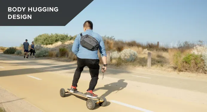 ストラップを調整すればバッグを身体にしっかり密着させられるので、スケボーや自転車で移動するときも安定感があります。