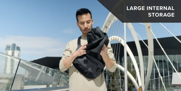 スリングバッグ「Bravo Sling」には、旅行にも便利です。