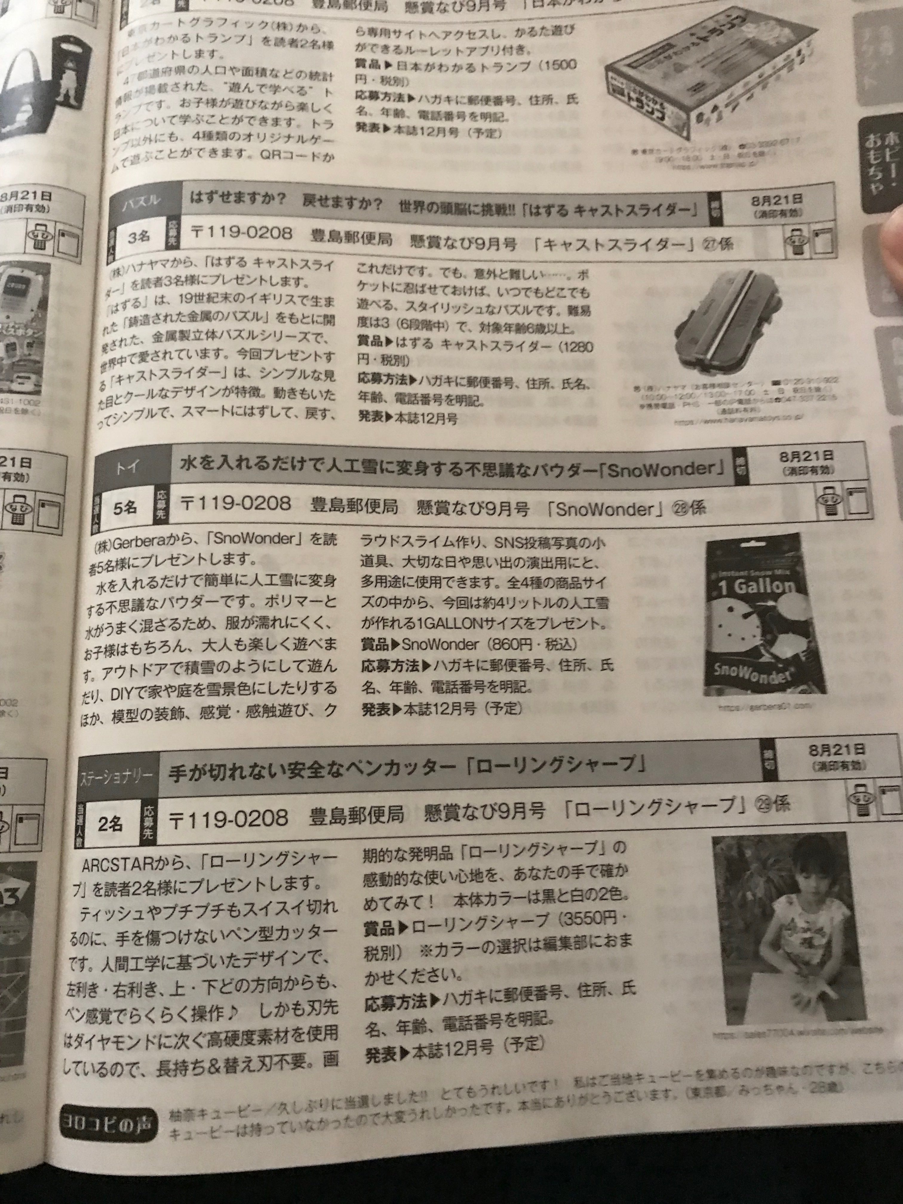 弊社商品が、懸賞なび9月号に掲載されました!