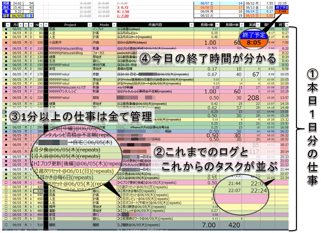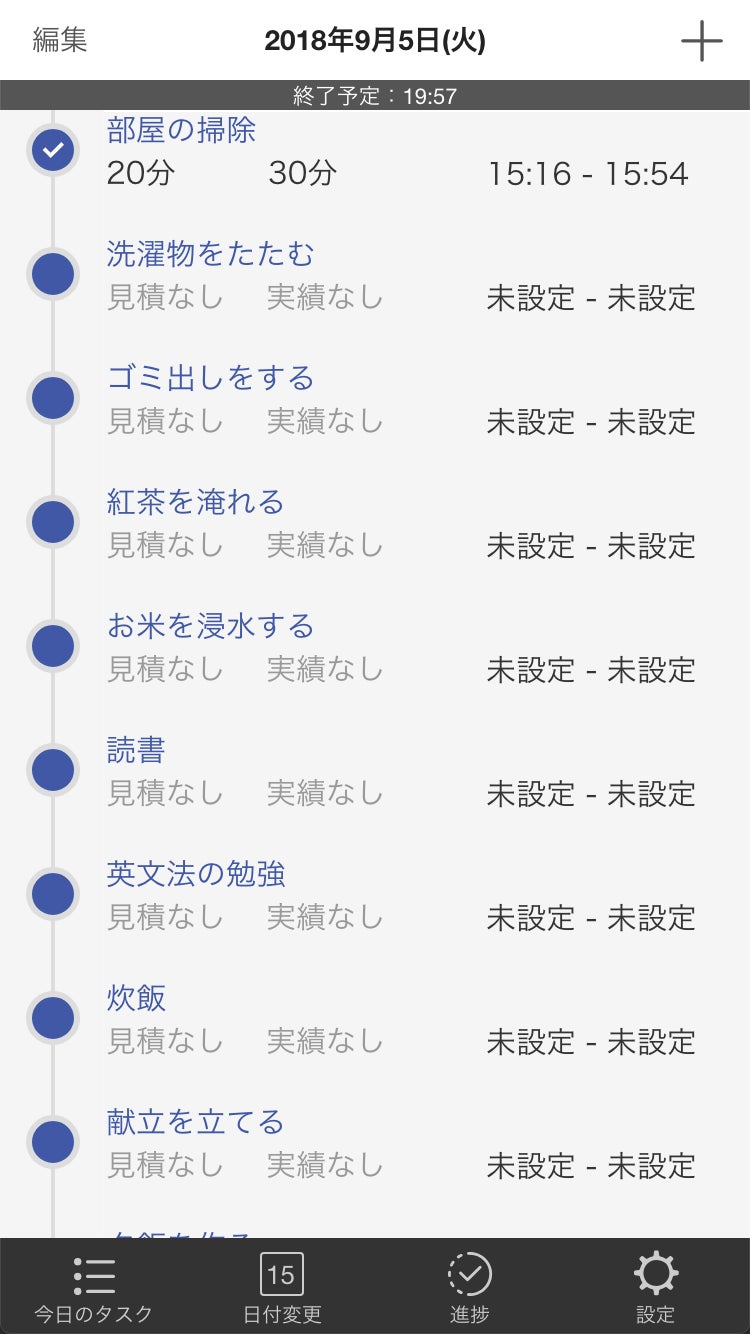 仕事でも、作業ごとに分解してタスク設定しておくことでタイムアタック的にこなすことができ、終了目安時間も一目瞭然。