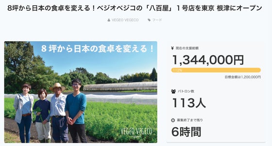 2017/01/11 18:49こんばんは!店長の杉本です。 沢山の方からご支援いただきありがとうございます!!いよいよクラウドファンディング最終日です。 八百屋開店の準備と並行で行っておりました本プロジェクトも今日まで。現在残すところ6時間を切りました。 ストレッチゴールとしての目標は150%です!支援していただい方々と一緒に創る八百屋がもう直ぐ開店です。最後の最後まで何卒よろしくお願い致します!! もっと見る