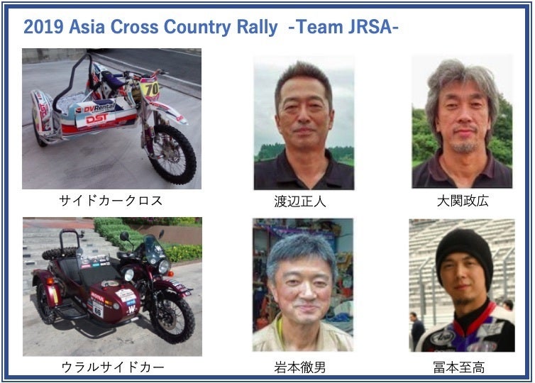 こうした状況を踏まえ、2019年アジアクロスカントリーラリーには更なる対外的なアピールと次世代の選手・スタッフを育成することを目的として、日本のサイドカーレースを統括する「日本レーシングサイドカー協会(JRSA)」の選抜日本代表チームとして2組のペアをエントリーさせ、2名の若手メンバーを参戦させることになりました。