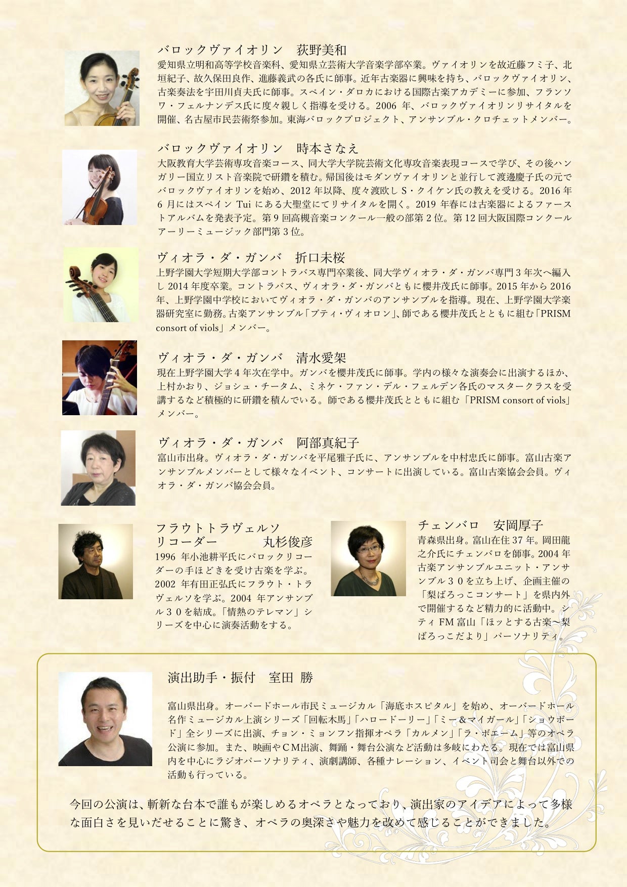 そして、リコーダーとトラヴェルソで協力してくださった丸杉俊彦さん。アンサンブル30のコアメンバーですが、今回のオペラには笛の指定はないのですが、ダンスシーンで音も賑やかに、ということで協力してくださいました。